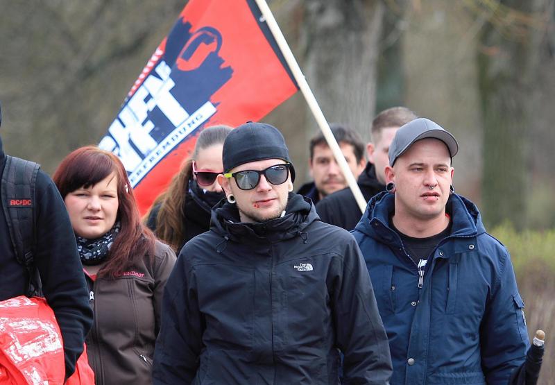Freie Kräfte Neuruppin: Beatrice Koch, Marvin Koch, und Christoph Meinecke (v.l.n.r.) am 28. März 2015 in Wittstock/Dosse(Foto: Presseservice Rathenow)