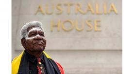 Yolngu leader Rev. Dr. Djiniyini Gondarra in front of Australia House in London