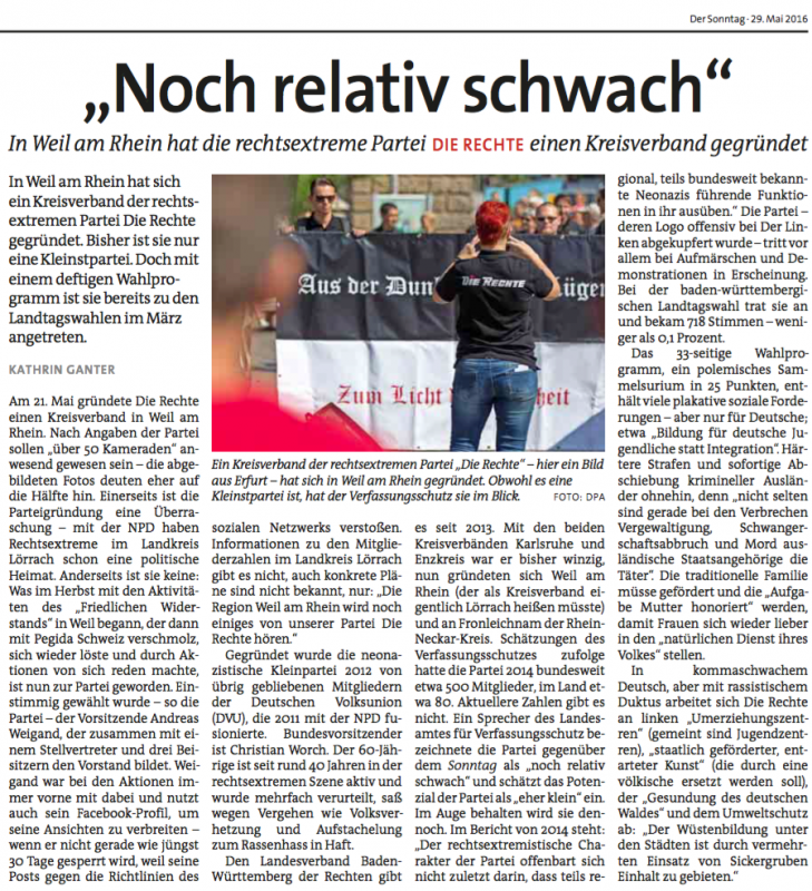 Der Sonntag, 29.05.2016, Lokalausgabe Freiburg, Seite 4, "Die Rechte"