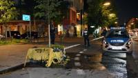 An der Kreuzung wird ein Polizeiwagen aus einer Gruppe Vermummter heraus mehrmals mit Steinen beworfen. Es entsteht ein hoher Sachschaden an dem Fahrzeug, verletzt wird niemand. Die Täter entkommen. Auch gegen die Fassade der Verdi-Zentrale fliegen Steine.