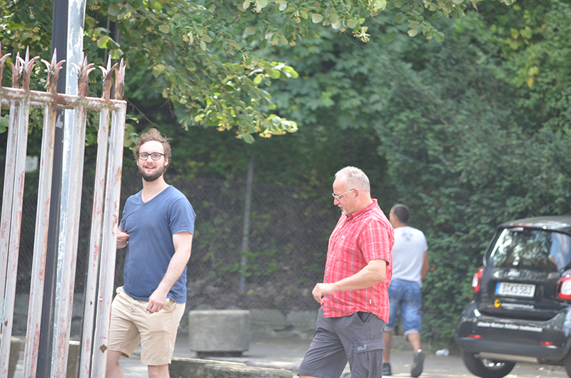 Herbert Mohr (l.) (AfD Pankow / Junge Alternative) und Dietmar Drewes (r.) (AfD Lichtenberg) "begrüßen" die Kundgebung