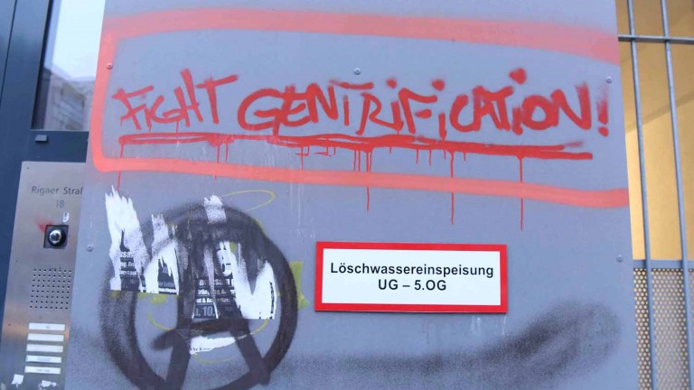 Diese Parole aus der Nacht zum Donnerstag steht neben der Klingel eines Hauses in Rigaer Straße