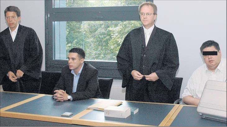 Die Angeklagten Matthias Gärtner (2. v. l.) und Michael Grunzel (r.) mit ihren Anwälten Ingmar Knop (l.) und Klaus Laßmann. Foto: B. Kaufholz