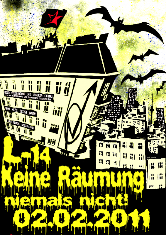 Banner Liebig 14: Keine Räumung, niemals nicht!
