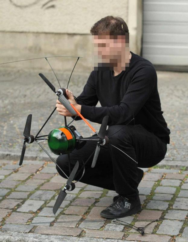 Vermeintlicher Spezialist mit Berliner Polizeidrohne in der Hand
