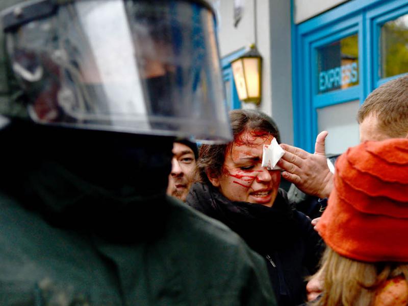 Bei der Demonstration kommt es zu Ausschreitungen zwischen der Polizei und linksautonomen Gegendemonstranten. Foto: dpa