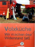 Verso mezzogiorno la polizia francese ha respinto alla frontiera la cucina popolare conosciuta come "Cucina popolare Le Sabot". La cucina, attrezzata per l' approvvigionamento di 3500 persone, era in viaggio verso il campo di resistenza di Strasbourg-Ganzau e voleva varcare il confine a Lauterburg. La polizia di frontiera si é giustificata spiegando che l' autista risultava schedata in una banca dati con la classifica di "membro del black block". La persona interessata peró non é mai stata fermata e tanto meno indagata o condannata in nessun modo. Sta di fatto, che la cucina popolare é regolarmente presente in occasione di campi internazionali di protesta. La polizia francese ha fornito come ulteriore giustificazione del respingimento la contestazione di porto di consigli legali sui comportamenti da tenere nelle relazioni con le autoritá e con la polizia francese. Questi opuscoli sono prodotti da varie associazioni di solidarietá, dal Legal Team nonché da avvocati e sono scaricabili in rete. La polizia ha negato agli interessati una traduzione delle loro opzioni legali (dei loro diritti, n.d.t.). Non é stata inoltre fornita alcuna informazione alla persona interessata in primis circa la durata del divieto di accesso al paese. Le informazioni relative alla schedatura probabilmente provengono dal Bundeskriminalamt (Polizia Criminale Tedesca, n.d.t.). La diffusione delle stesse in occasione di eventi di protesta internazionali é ormai divenuta prassi comune. Nella maggioranza dei casi, le persone interessate non vengono a sapere nulla della schedatura e spesso non é comprensibile, in che modo le informazioni che le concernono finiscano nella banca dati. Dopo il respingimento alla frontiera, la "Cucina popolare" á stata bloccata dalla polizia tedesca. Tutti i coltelli per tagliare la verdura sono stati sequestrati. La polizia ha la sfacciataggine di sostenere che i coltelli dimostrano che venissero pianificate azioni militanti. Ora la polizia tedesca ha minacciato di negare alle persone interessate anche l' uscita dal paese.